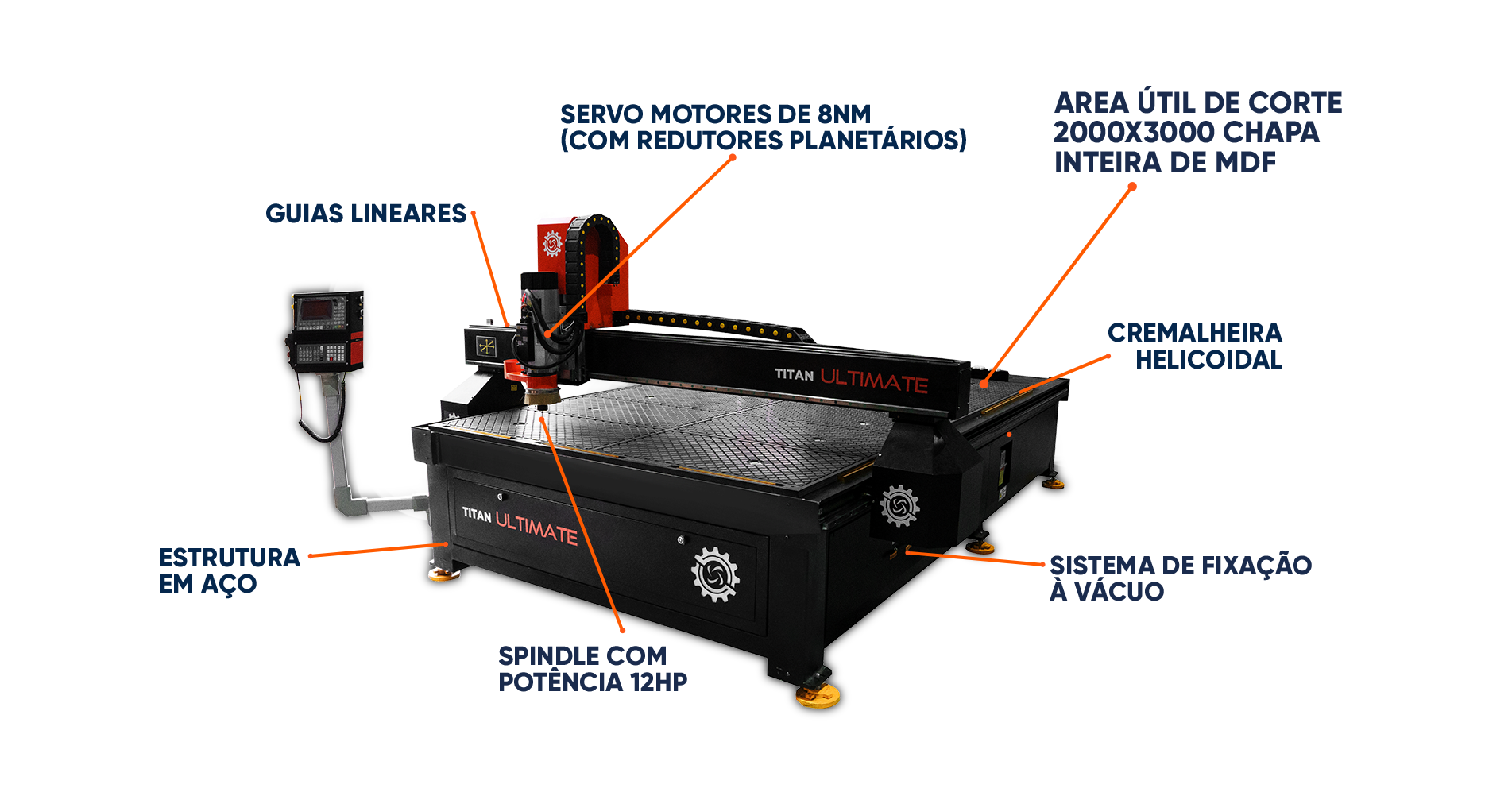 A Mak Titan Ultimate é a solução definitiva para quem busca máxima produtividade e precisão. Com uma estrutura reforçada em aço e servo motores com redutores planetários, ela entrega estabilidade e desempenho superior em cortes e usinagens complexas. Equipada com um potente spindle de 12HP, sistema de fixação a vácuo e troca automática de ferramentas com magazine de 4 posições, a Mak Titan Ultimate permite operações ágeis e contínuas, reduzindo o tempo de setup e aumentando a eficiência da produção. Ideal para produções em larga escala, essa máquina CNC combina tecnologia de ponta com o suporte especializado da Mak CNC, garantindo resultados impecáveis em cada projeto.